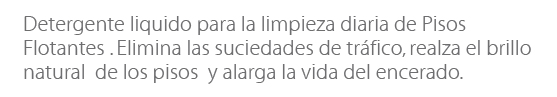 Es un limpiador de espuma controlada, de rápido secado sin opacar las superficies. No requiere de enjuague y su pH no altera las ceras acrílicas que se aplican para abrillantar los pisos flotantes y de madera vitrificada.