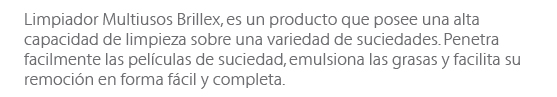 Tiene un agradable aroma y es muy económico en su uso. Es adecuado para la limpieza de muros, pisos , superficies plásticas, artefactos de baño, azulejos,vidrios, espejos, cerámicas grifería cromada, etc. Puede usarse tambien sobre madera pintada, metales, gomas, acero inoxidable, y es adecuado para eliminar manchas de aceite, grasa, tinta de plumones y muchas otras.